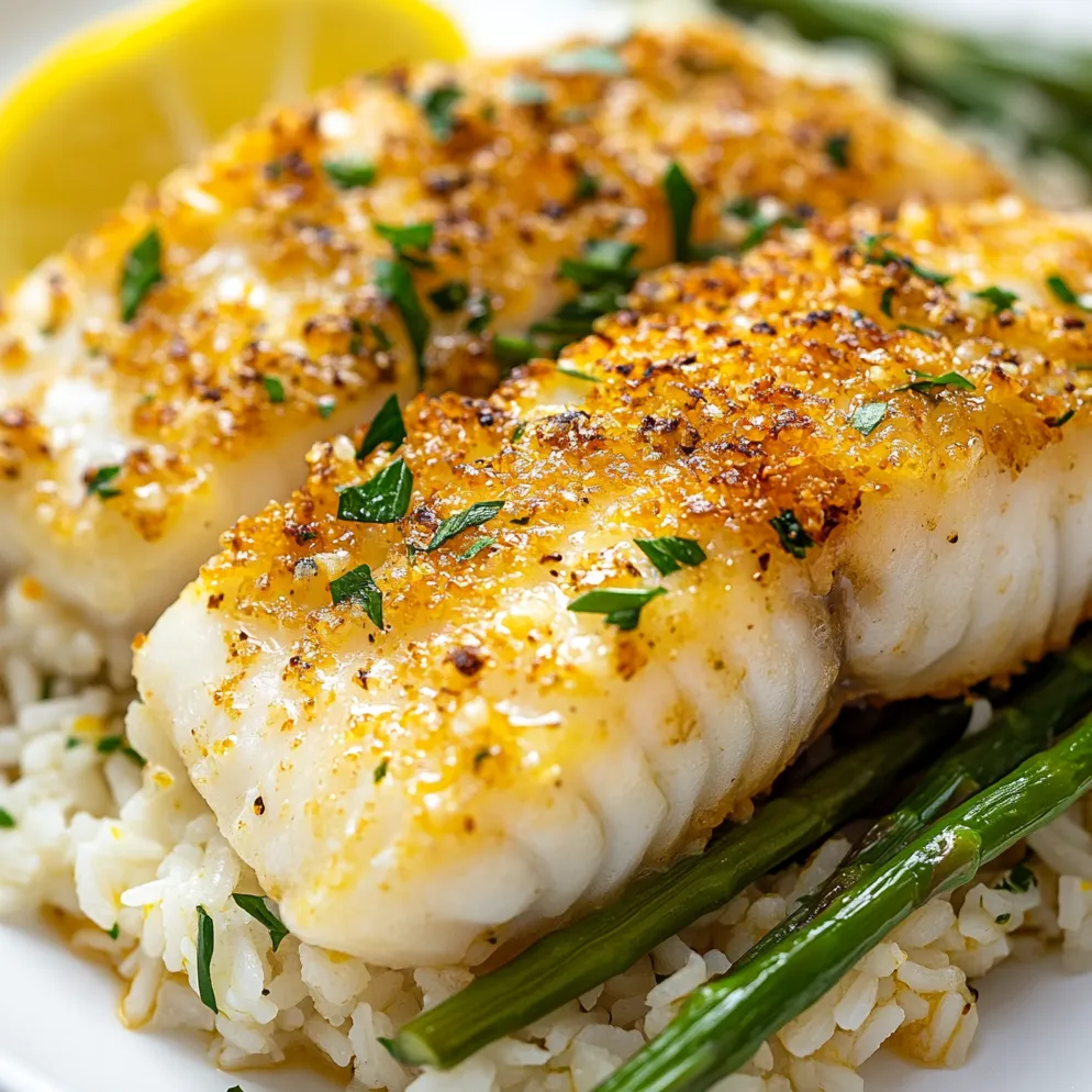 Lemon Garlic Cod with Cilantro Cauliflower Rice and Asparagus