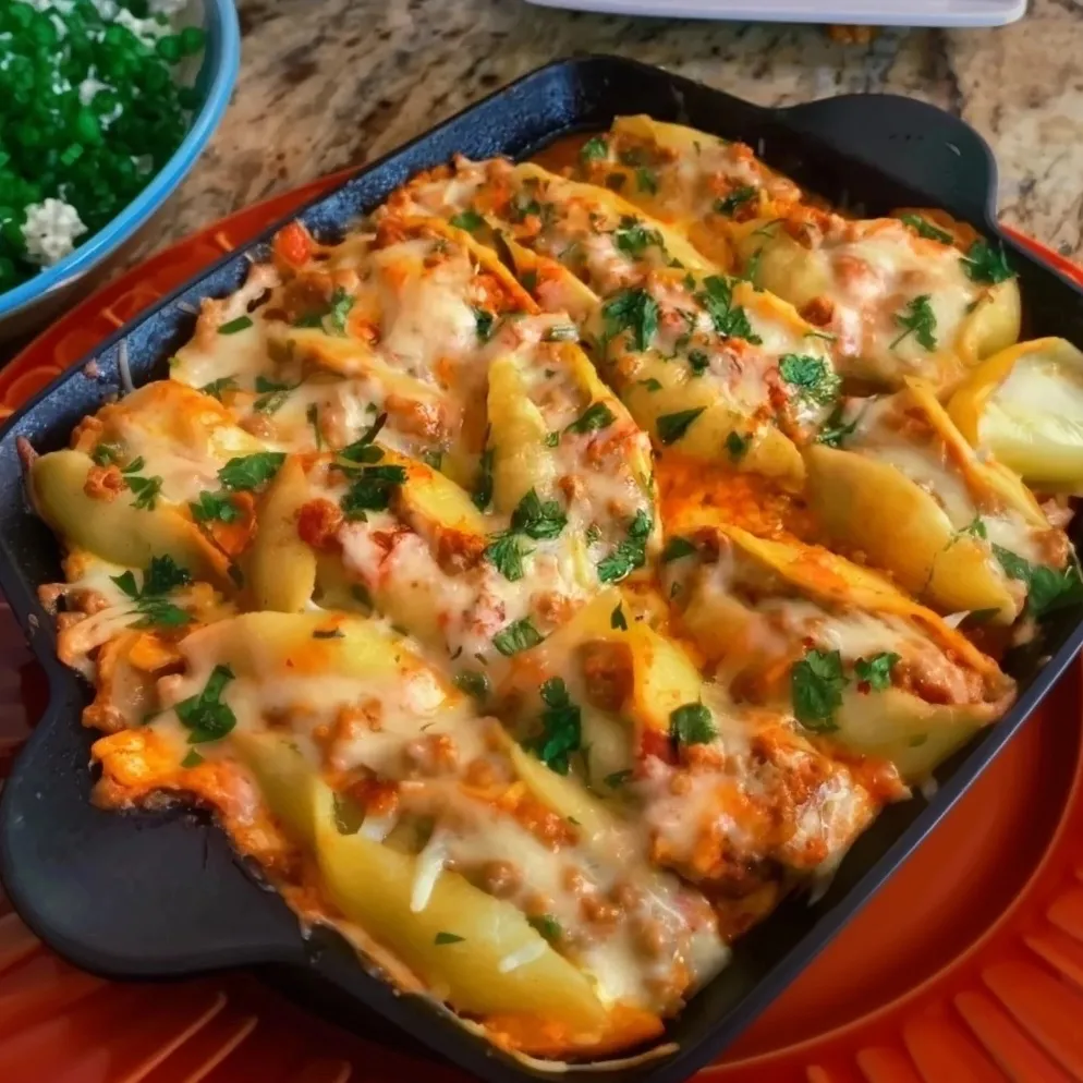 #MexicanStuffedShells #EasyDinner #ComfortFood #CheesyPasta #MexicanInspired