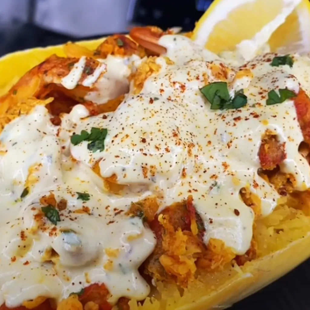 Welcome all seafood lovers! Dive into a blend of ocean flavors nestled within a roasted spaghetti squash. This delightful dish brings together succulent crawfish, shrimp, and crabmeat in a creamy, herb-infused cheese sauce. It's an easy yet indulgent recipe, perfect for a cozy dinner or an elegant gathering.