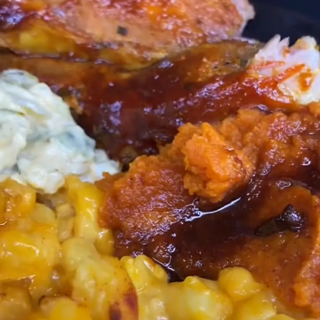 Indulge in a soulful and comforting meal that brings together a variety of beloved Southern flavors. This delicious spread features creamy Baked Mac & Cheese, smooth Sweet Potato Mash, tender Collard Greens, classic Potato Salad, and mouth-watering BBQ Ribs. Perfect for a cozy Sunday dinner or any time you crave some soul food goodness.