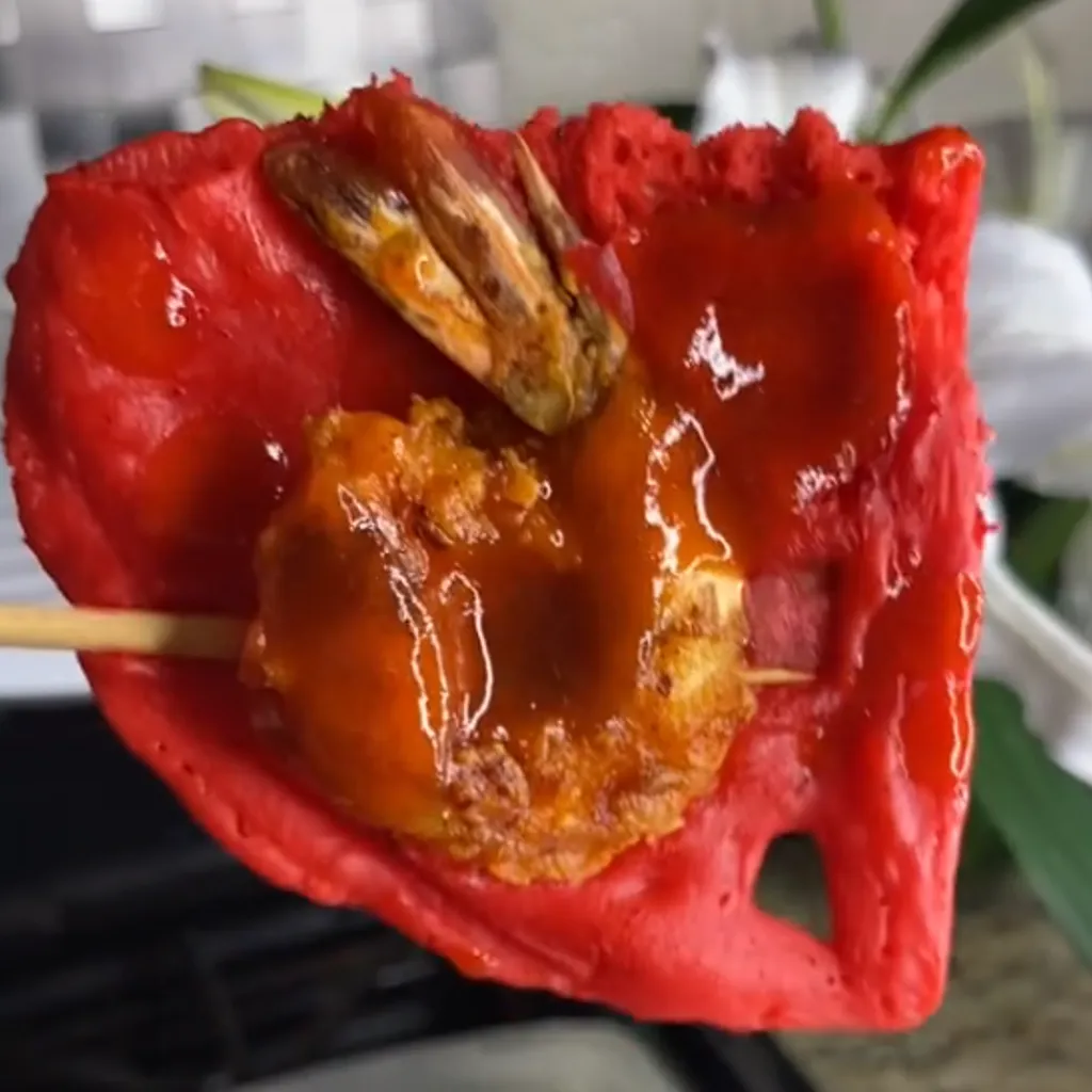 #seafood #fusioncuisine #creativecooking #redvelvet #sweetandsavory #easyappetizers #foodonastick #shrimp #wafflerecipes #partyfood
