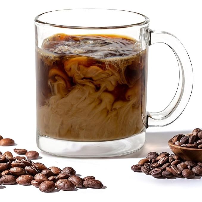 Vikko Glass Coffee Mug Set of 6, 10.75 Ounce Clear Mugs, Microwave and Dishwasher Safe