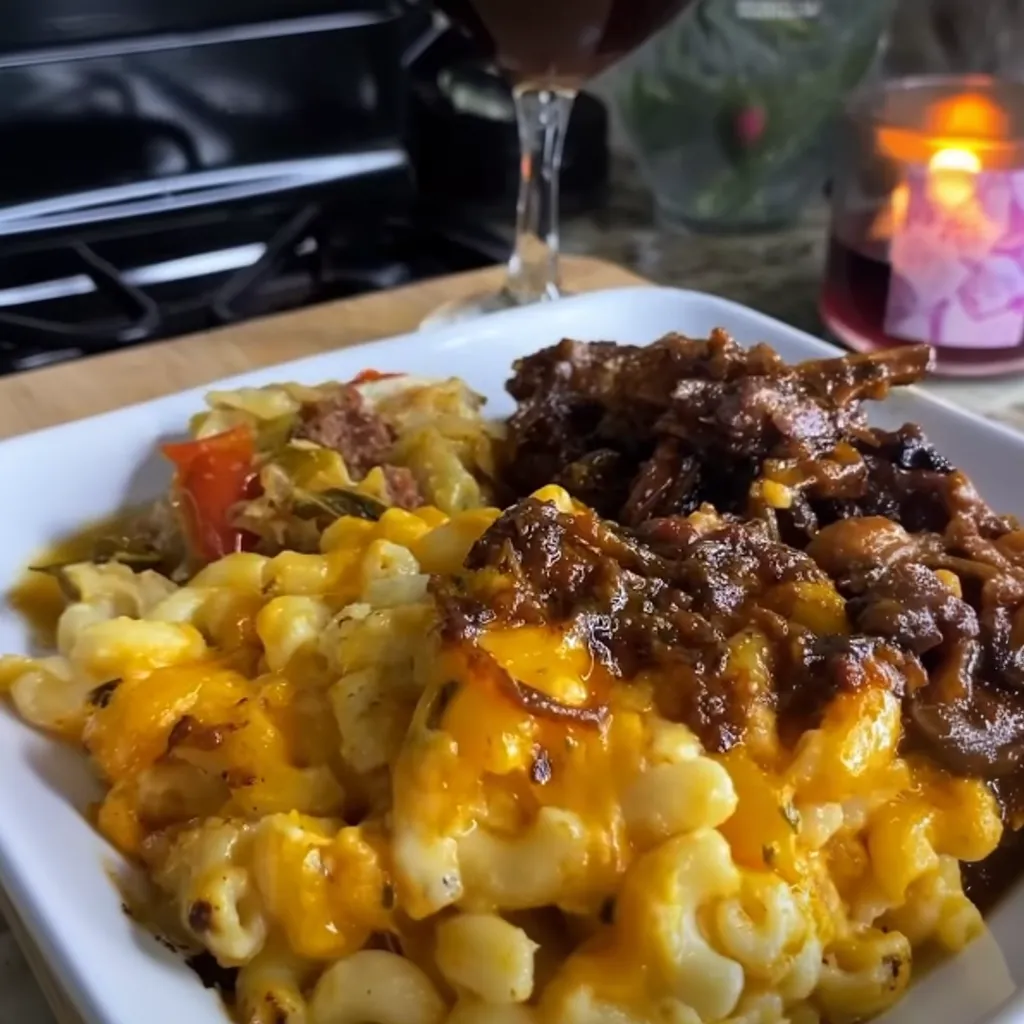 Oxtails with Southern Fried Cabbage and Baked Mac & Cheese is the ultimate comfort meal, combining tender oxtails with flavorful cabbage and creamy mac & cheese.