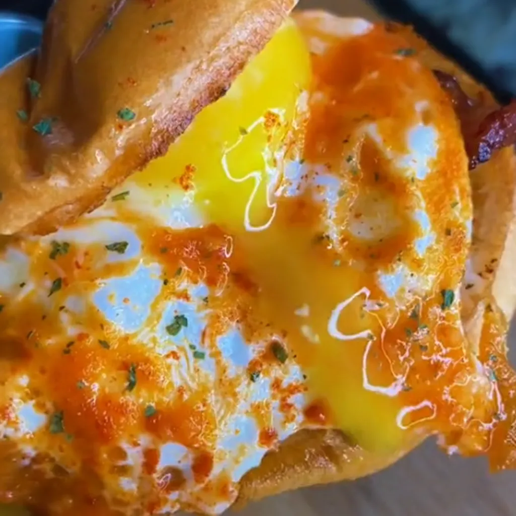 Elevate your burger game with this delicious Sriracha Bacon, Egg, and Cheddar Cheese Burger. Perfect for brunch or dinner, this gourmet burger brings together juicy patties, crispy bacon, a perfectly fried egg, melted cheddar, caramelized onions, and a spicy sriracha drizzle for an irresistible fusion of flavors and textures.