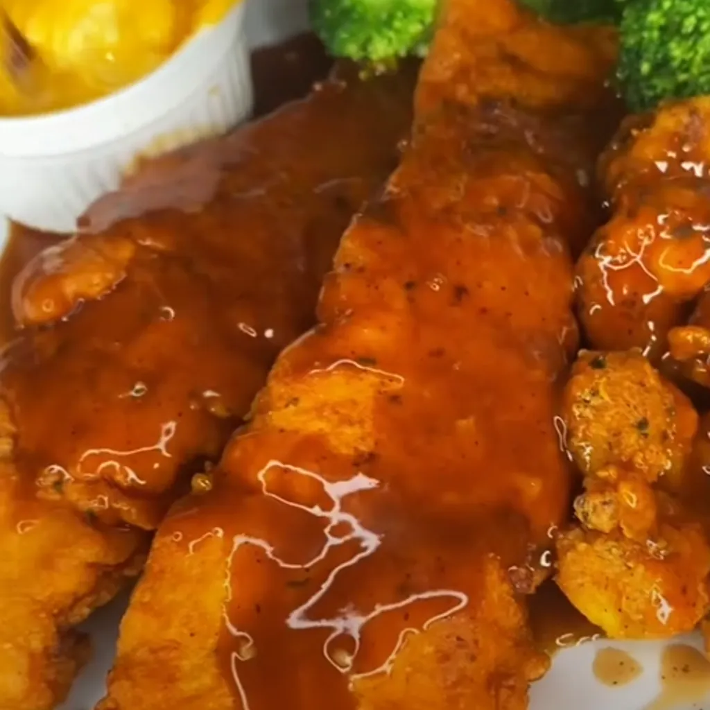 This quick and savory dish features pan-fried salmon and shrimp, known for their crispy golden texture and a tantalizing drizzle of hot honey sauce. Combining the best of the ocean with a sweet heat, it's the perfect main course for seafood lovers. Serve it alongside mac and cheese or steamed broccoli for a well-rounded meal.