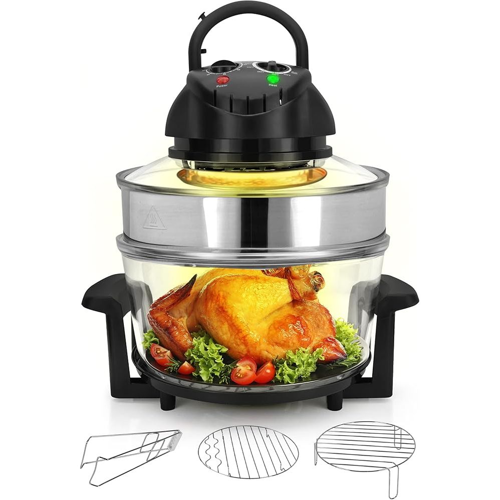 Nutrichef Convection Countertop Toaster Oven - Healthy Kitchen Glass Air Fryer Roaster Oven, Bake, Grill, Steam Broil, & Roast - Includes Glass Bowl, Broil Rack, & Toasting Rack - 18 Quart Capacity