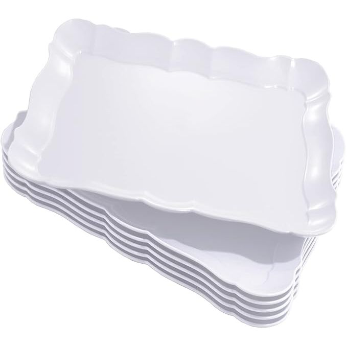 BBG 6 Pack Appetizer Serving Tray, Rectangle White Plastic Serving Platters, 15" x 10" Heavy Duty Serving Platters, Reusable Trays Perfect for Wedding, Parties & Buffet,Spring
