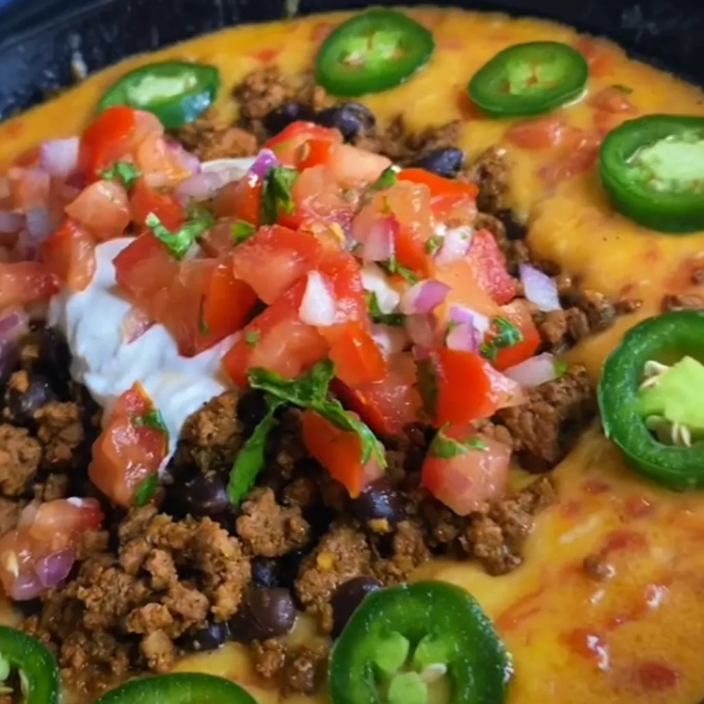 Beef and Bean Queso Skillet Dip