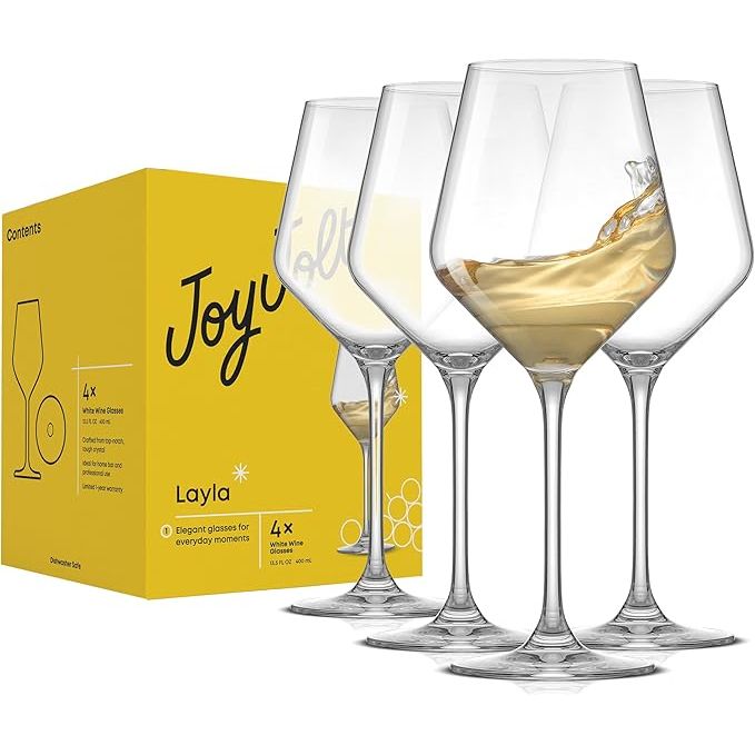 JoyJolt Layla White Wine Glasses, Set of 4 Italian Glasses, 13.5 oz Clear – Made in Europe