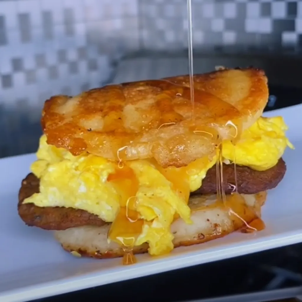 Start your day with this savory and sweet breakfast delight! Inspired by the popular fast-food McGriddle, this homemade Sausage, Egg & Cheese Pancake Sandwich is a perfect morning treat. It's a delightful combination of fluffy pancakes infused with maple syrup, hearty sausage, deliciously cheesy eggs, and a drizzle of syrup on top.